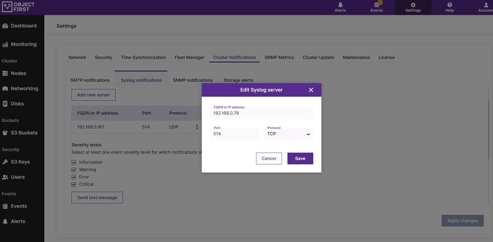 1. To start, point your Ootbi syslog forwarding to the Wazuh installation.