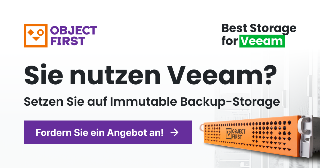 Ransomware-sicher und unveränderlich out-of-the-box, sorgt Ootbi von Object First für die Wiederherstellung mit sicherem, einfachem und leistungsstarkem Backup-Speicher für Veeam-Kunden, der in 15 Minuten installiert, gestapelt und mit Strom versorgt werden kann und dabei unschlagbare Backup- und Wiederherstellungsleistung bietet.