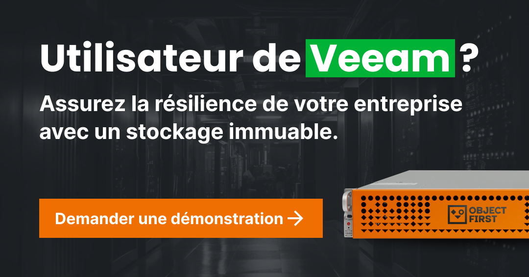 Basé sur une technologie immuable de pointe stockage d'objets, Ootbi (immutabilité prête à l'emploi) d'Object First est à l'épreuve des ransomwares, offrant un stockage de sauvegarde sécurisé, simple et puissant pour les clients de Veeam.