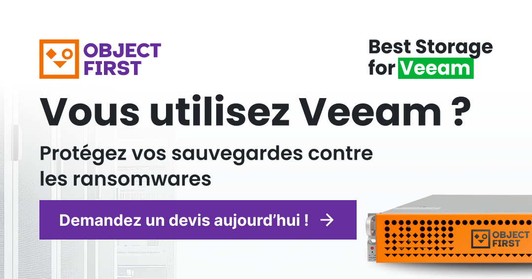 Ootbi de Object First est un appareil de sauvegarde WORM hors ligne basé sur des logiciels utilisant un ensemble de disques durs et un système d'exploitation Linux durci pour fournir une défense de premier ordre contre les ransomwares. Conçu explicitement pour Veeam, Ootbi s'intègre dans une stratégie de sauvegarde 3-2-1 recommandée comme l'une des meilleures pratiques pour la protection des données.