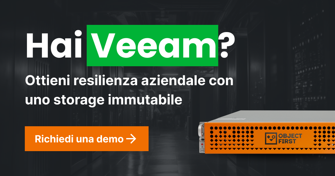 Costruito su tecnologia immutabile all'avanguardia storage a oggetti, Ootbi di Object First (immutabilità pronta all'uso) è a prova di ransomware, offrendo uno storage di backup sicuro, semplice e potente per i clienti Veeam.