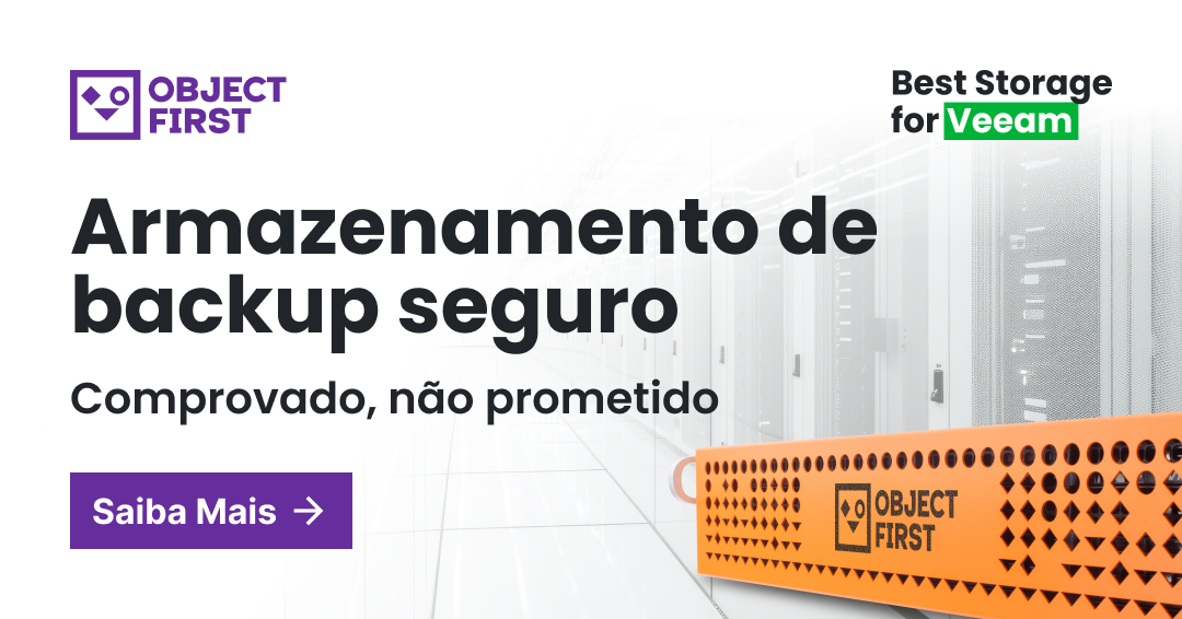 À prova de ransomware e imutável desde o início, Ootbi da Object First é construído sobre os mais recentes princípios de Zero Trust e segurança de dados e oferece armazenamento imutável nativo S3 armazenamento de objetos projetado e otimizado para desempenho de backup e recuperação Veeam imbatível.